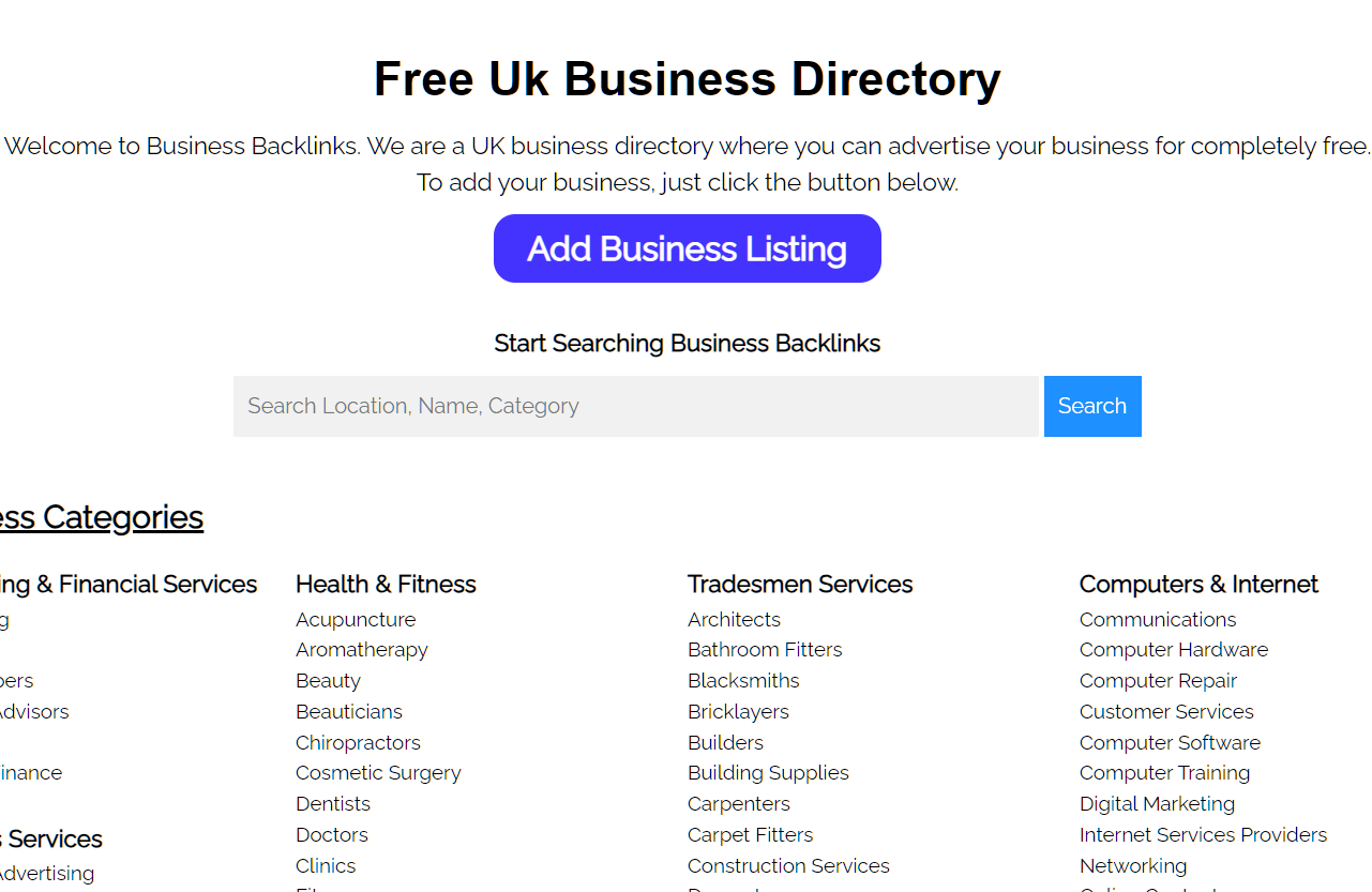 We provide free business advertising to Uk businesses. To start advertising your business on our website please click the link to the left.